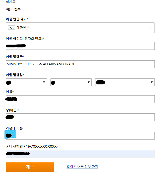 국가및, 여권번호 등등 입력 화면이 나와요.