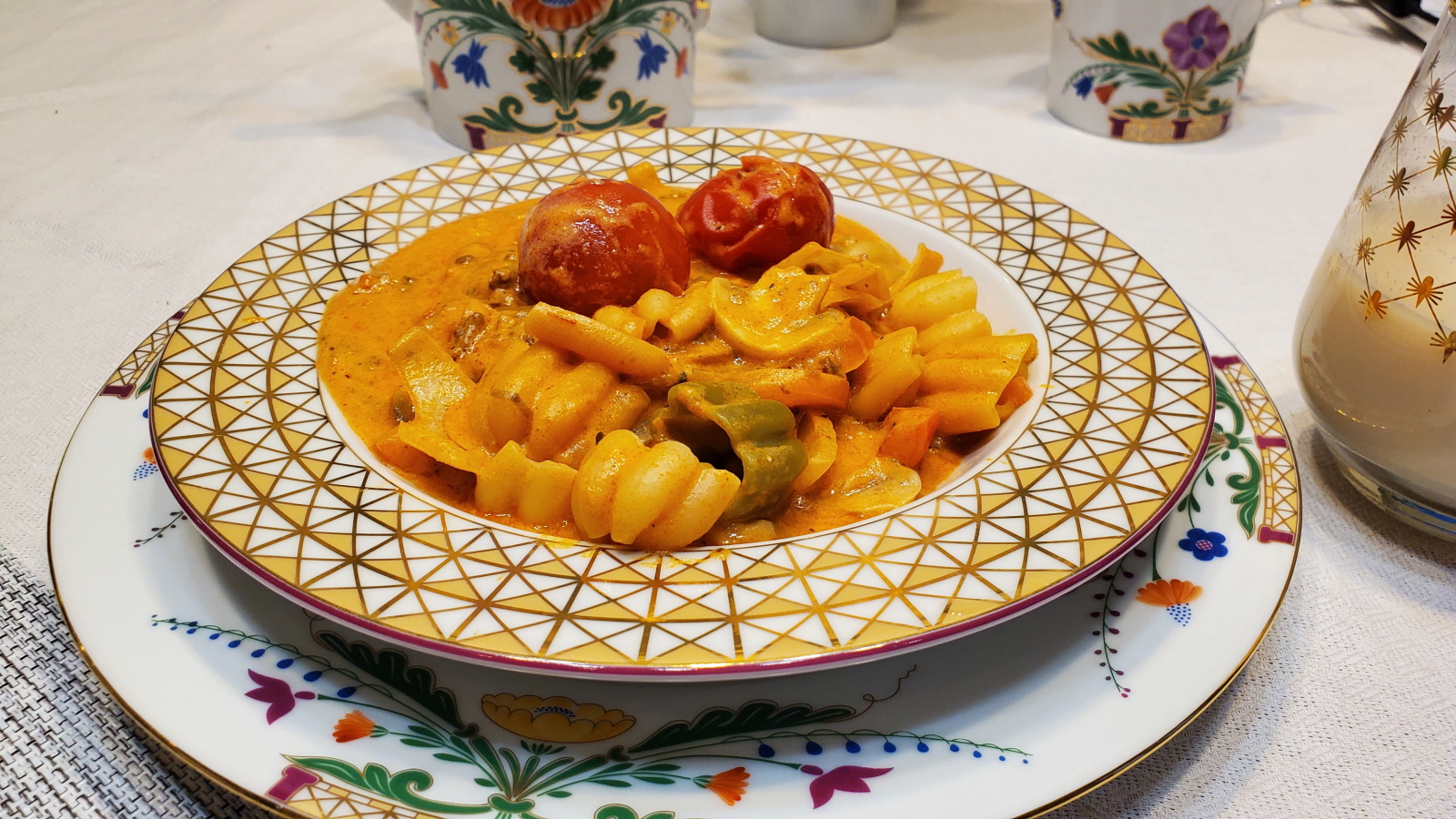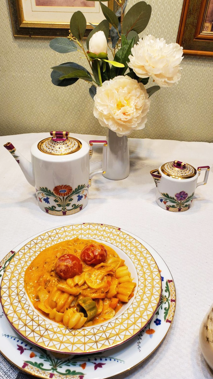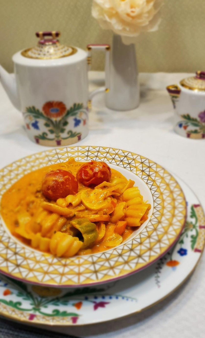 요렇게 볶아서 토마토파스타 소스 + 생크림 넣고