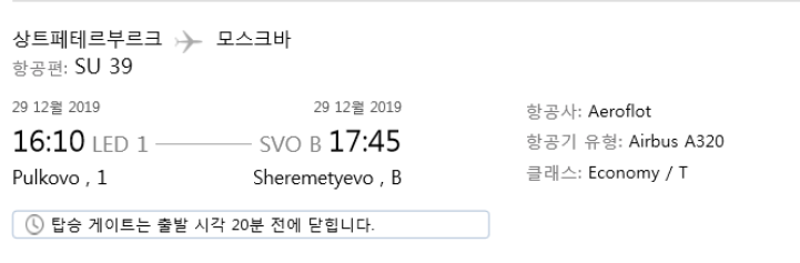 1. 상트페테르부르크 LED-> 모스크바 SVO