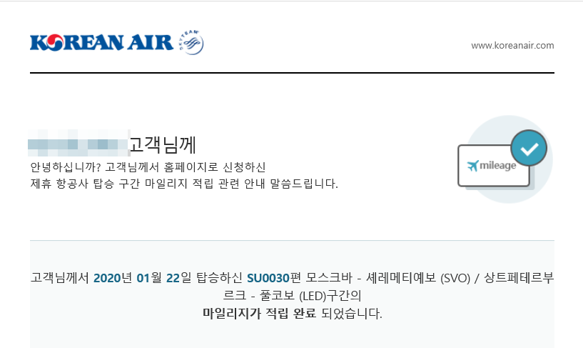 대한항공 홈페이지에서 마일리지사후 적립할 수 있어요.