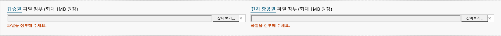 다음을 누르면 E티켓과 탑승권을 첨부하라고 합니다.