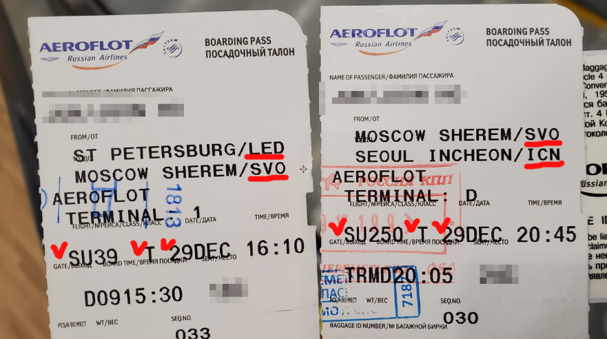 공항 코드(ex:LED, SVO 등등)로 검색하면 찾기 쉬워요!