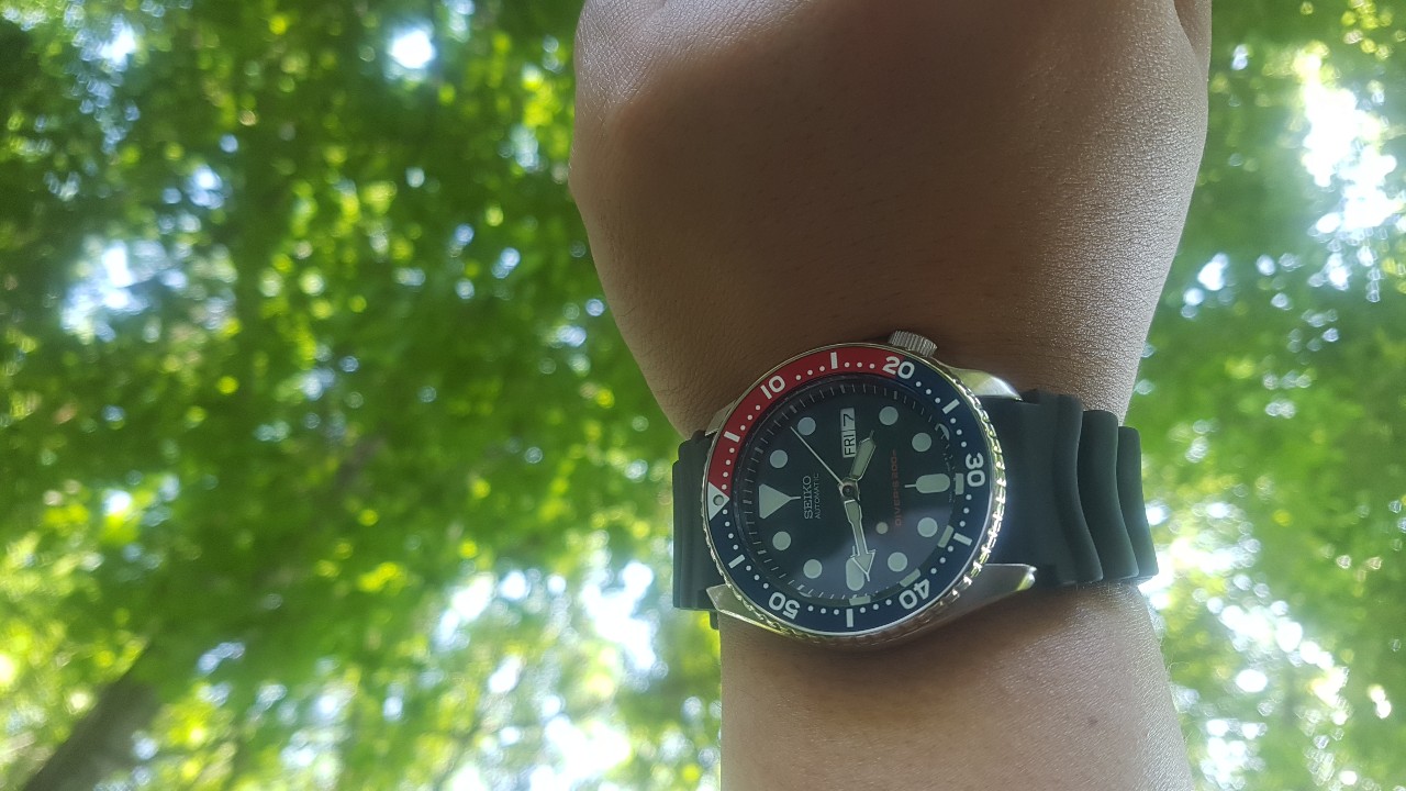 총평: 다이버 컬렉션의 시작은 SKX라고들 한다. 시작을 했다는 것이 기쁨. 펩시 베젤이 매우 마음에 들고 적절한 가격대에 좋은 시계를 산 느낌임. 그러나 데이 데이트 창 조절이 처음엔 되더니 갑자기 안되기 시작. 조마샵에 문의하였다. 이 점이 많이 속상하다. 러버밴드는 바꿔야 될 듯함. 빳빳하고 땀이 많이 참. 그린색 나토줄을 구매해놓았다.