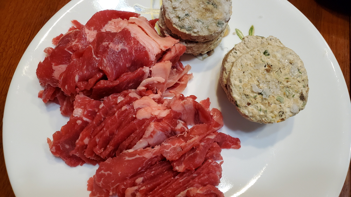 슬라이스 고기와 새우 동그랑땡