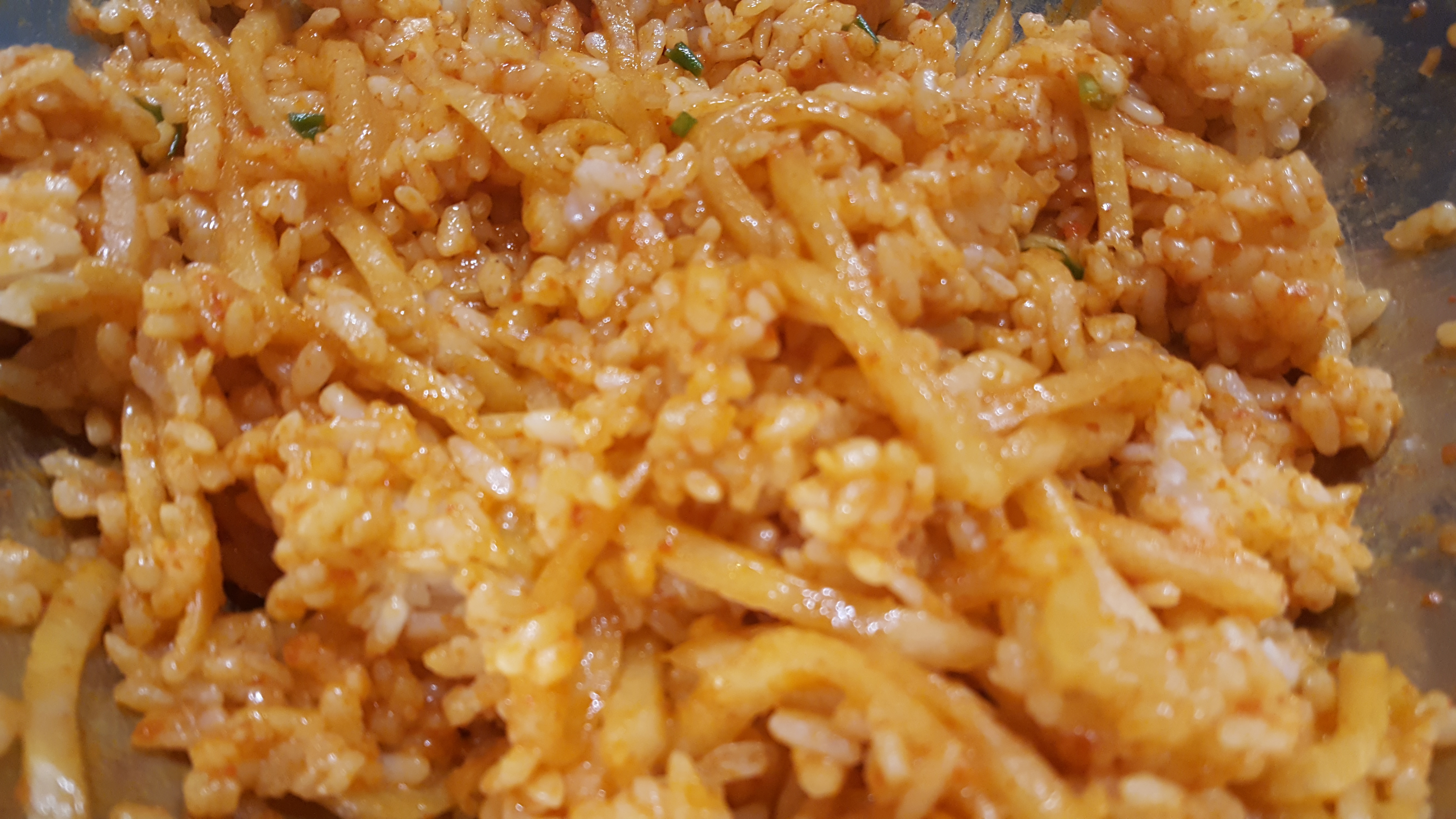 익을 때까지 못 참고 저녁 먹다가 남편이랑 조금 남은 밥으로 참기름 넣고 비벼 먹었어요.