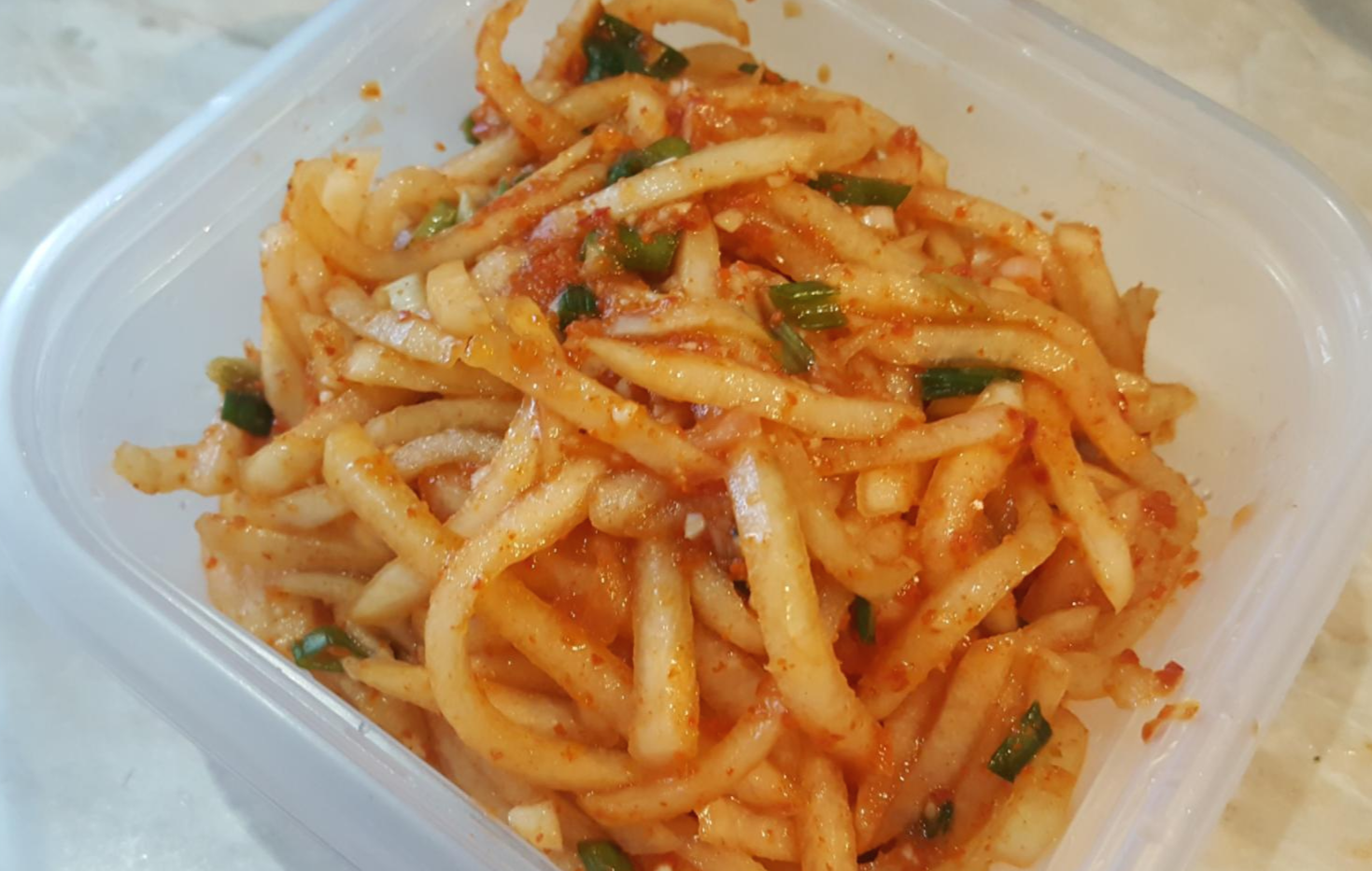 계획에 없던 무생채를 했어요.