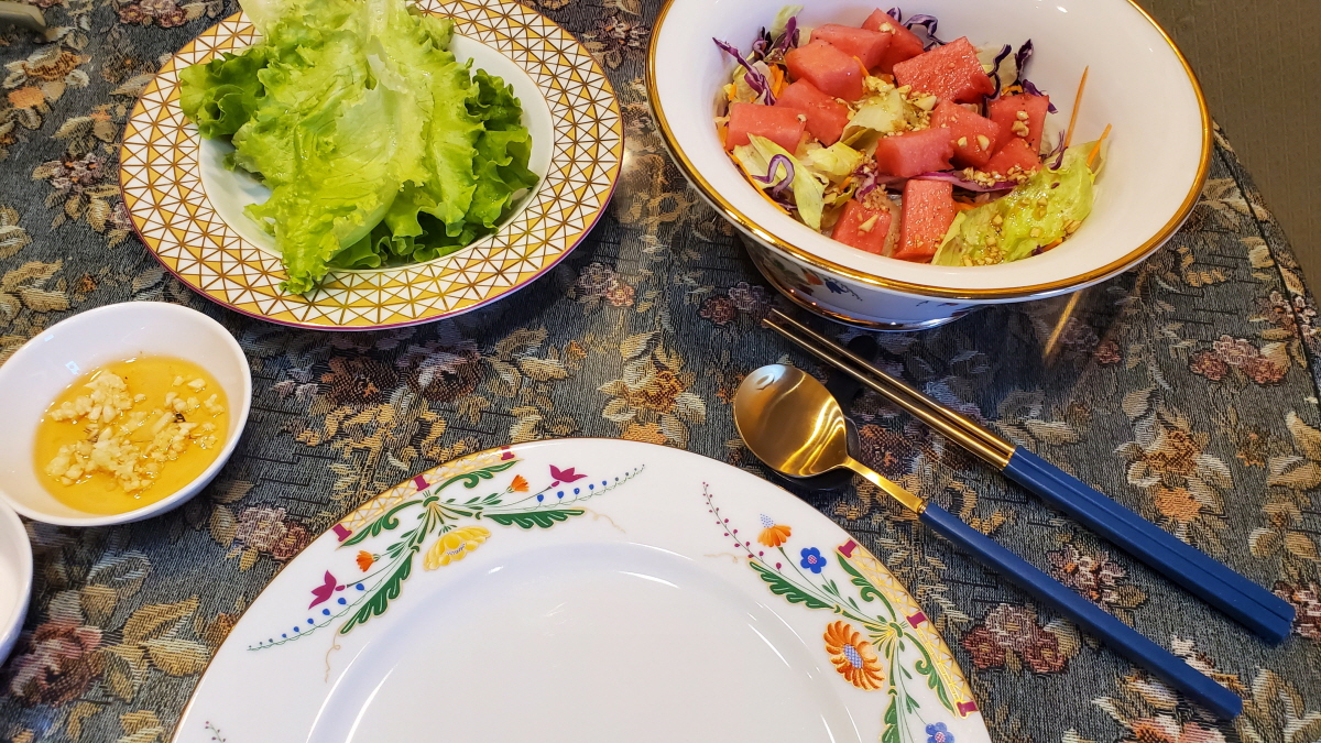 시원한 맛으로 먹으려고 샐러드에 넣고