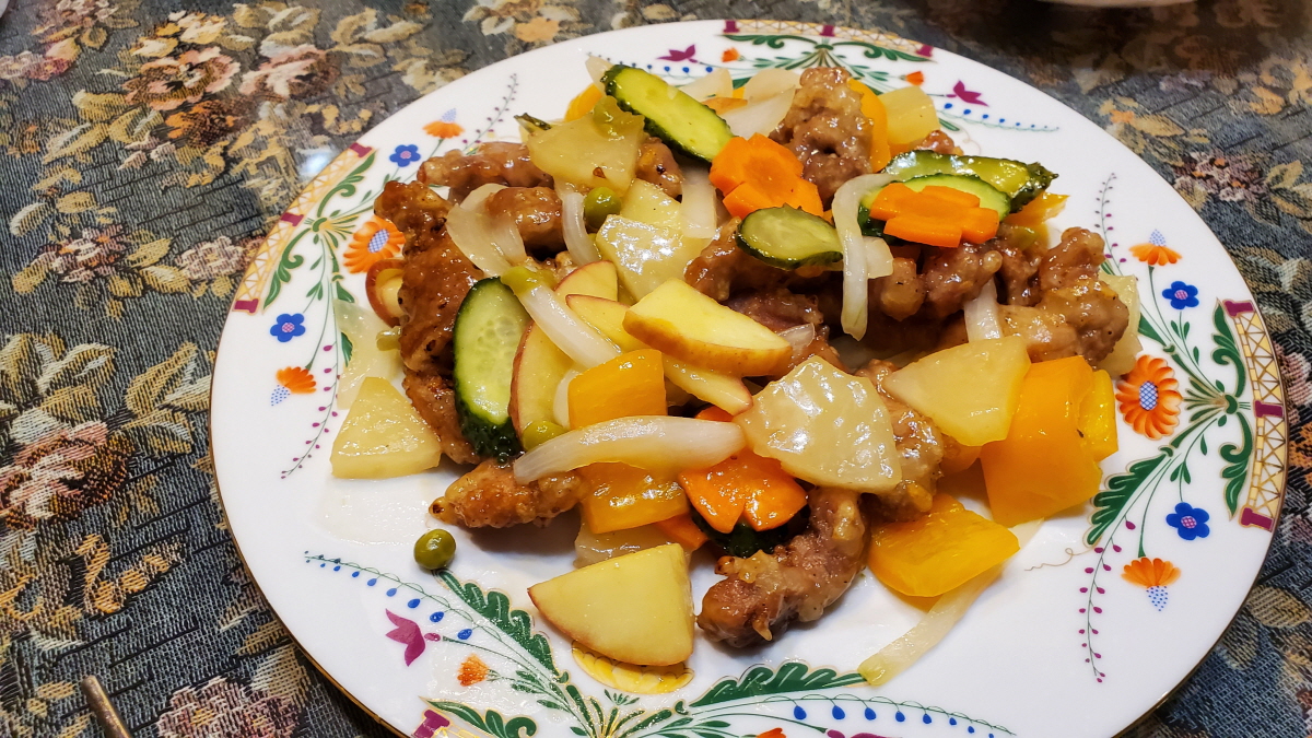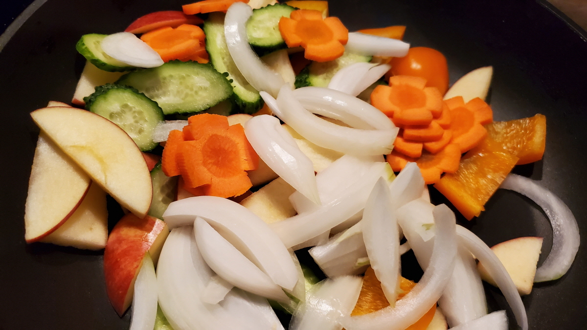 양파, 파인애플 통조림, 사과, 오이, 당근, 파프리카