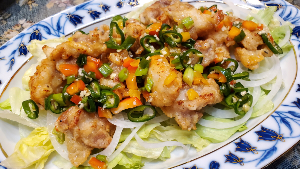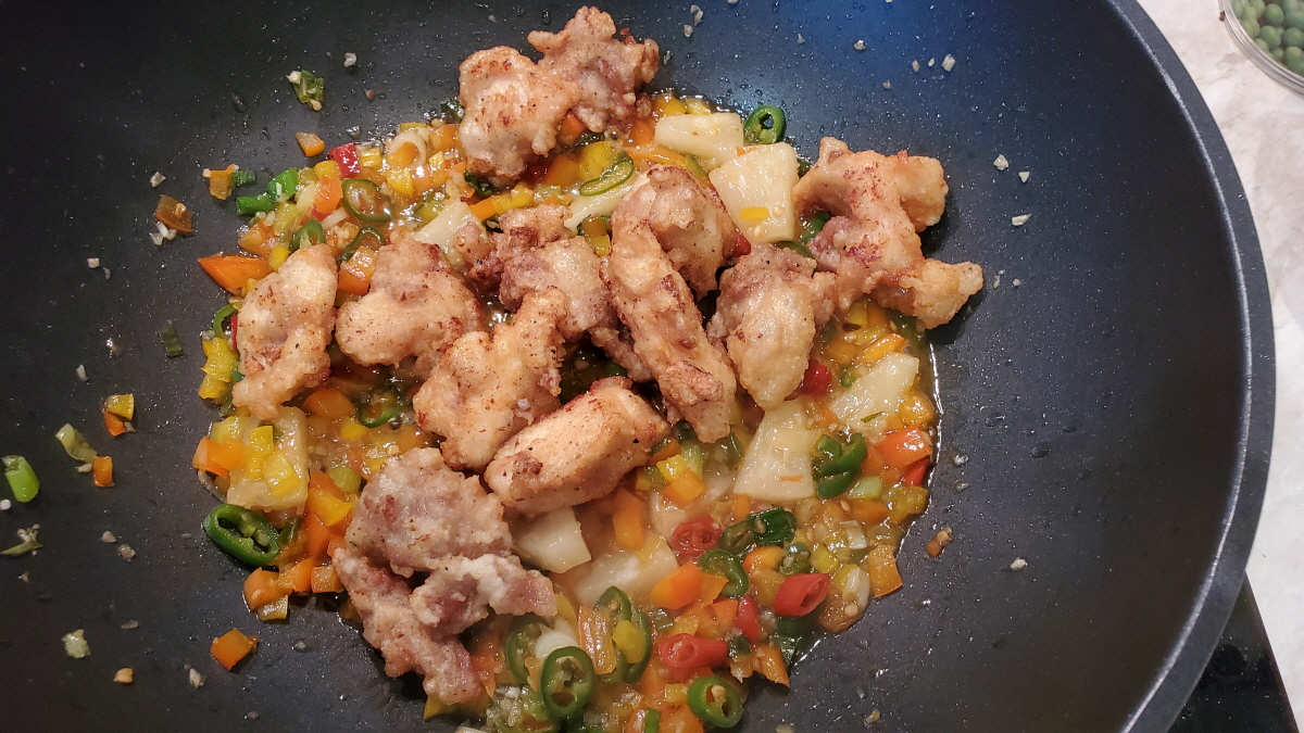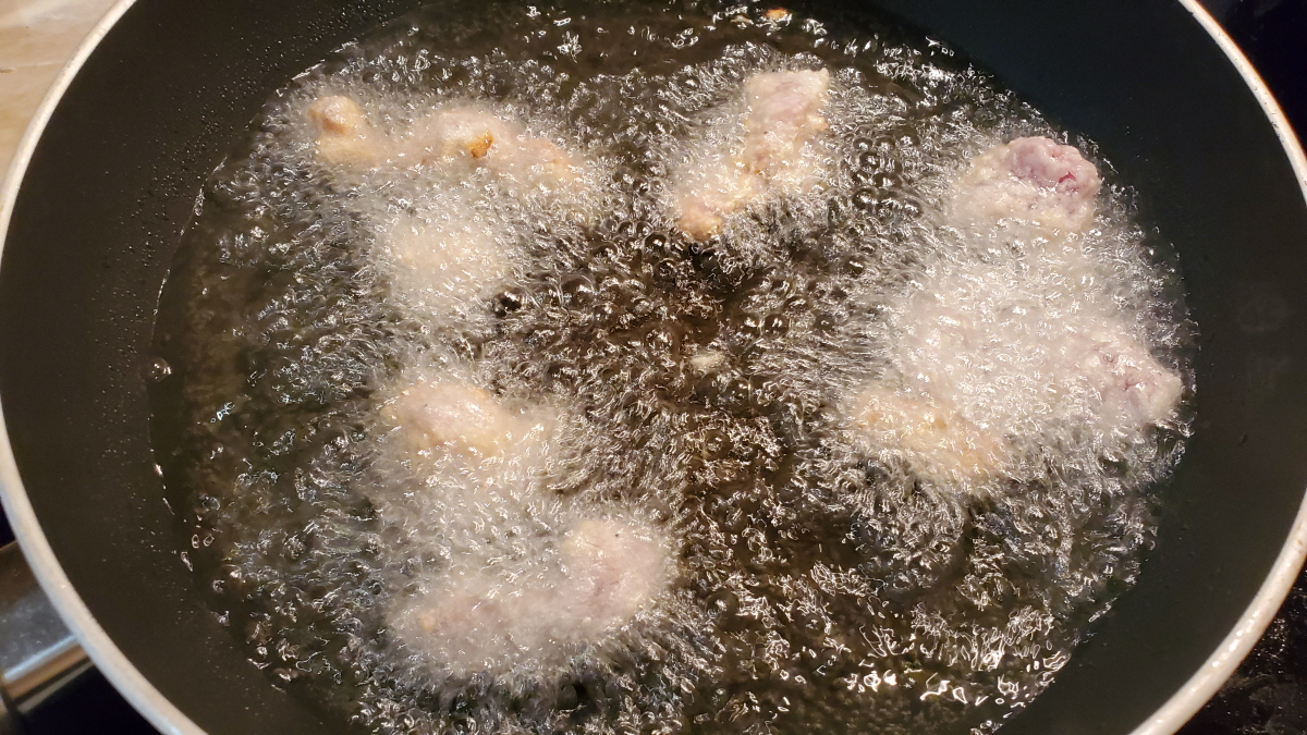 위에 탕수육 고기에 불린 전분가루 묻혀주듯이~
