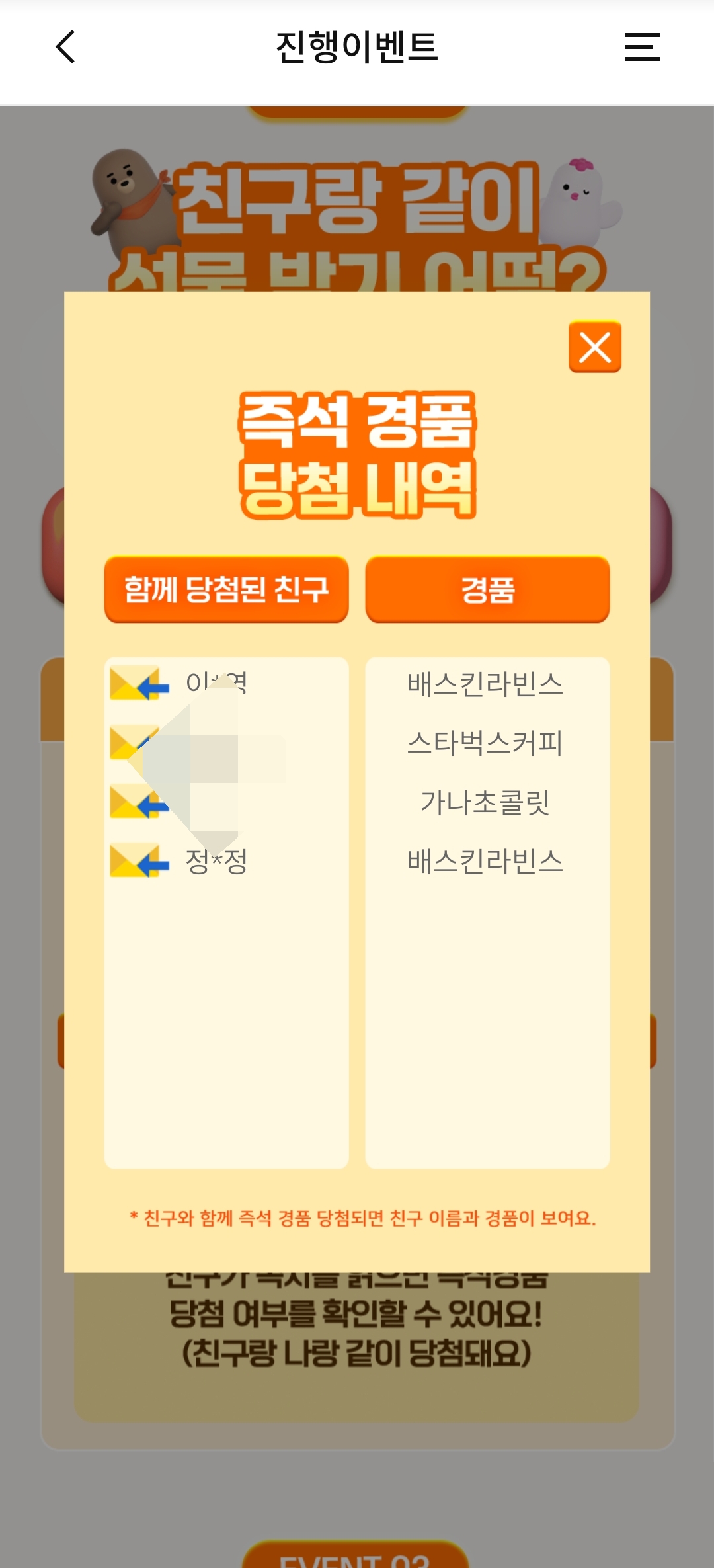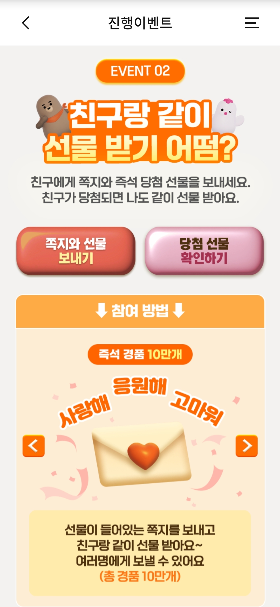 우리은행 즉석당첨 이벤트,친구랑 같이 선물 받기 어떰?