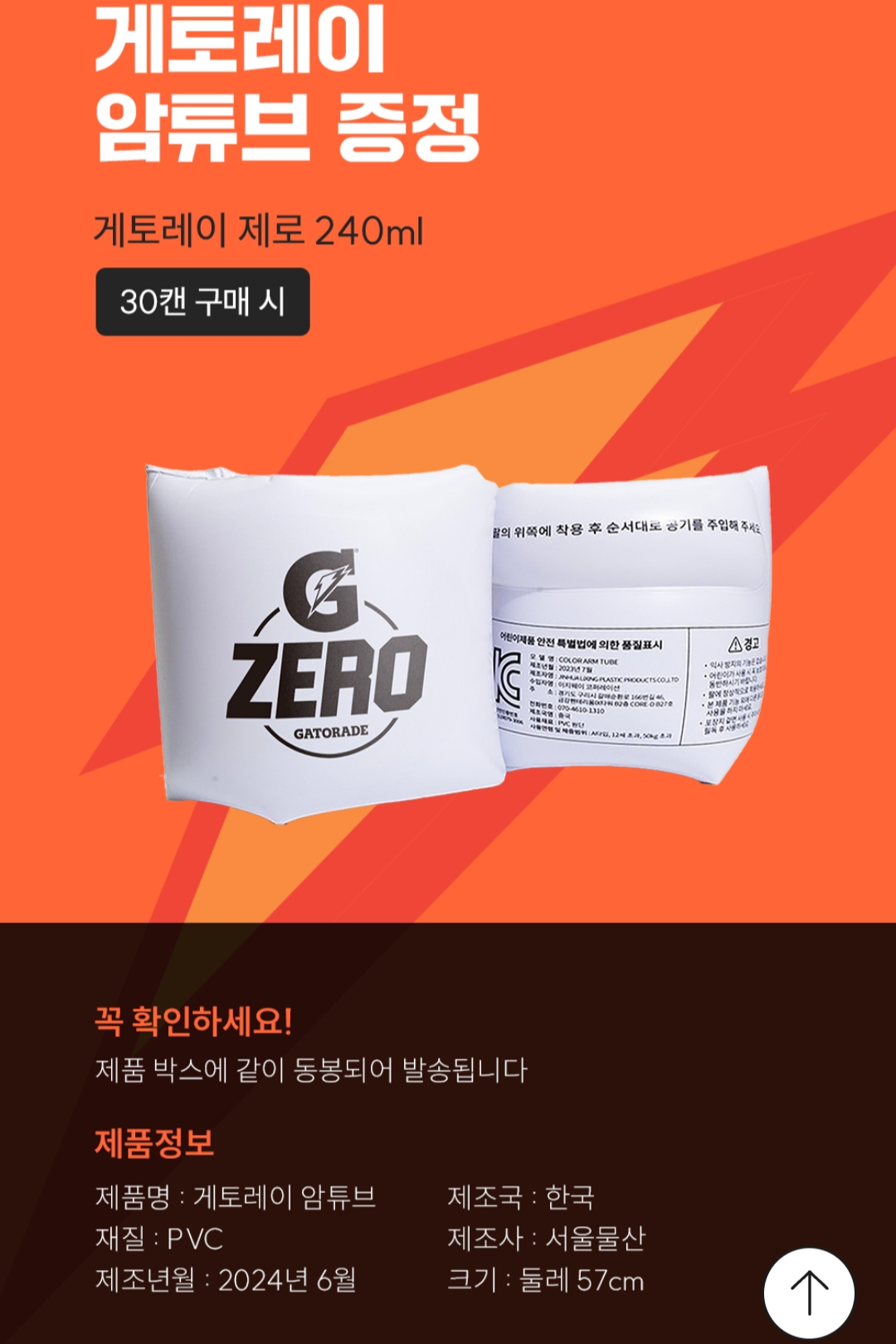이온음료 주문하려고 봤는데 암튜브, 줄넘기, 에코백을 주네요!!? 전에 워트파크에서 아이가 암튜브 사용하는 거보니 탐나서 이거로 주문했어요.