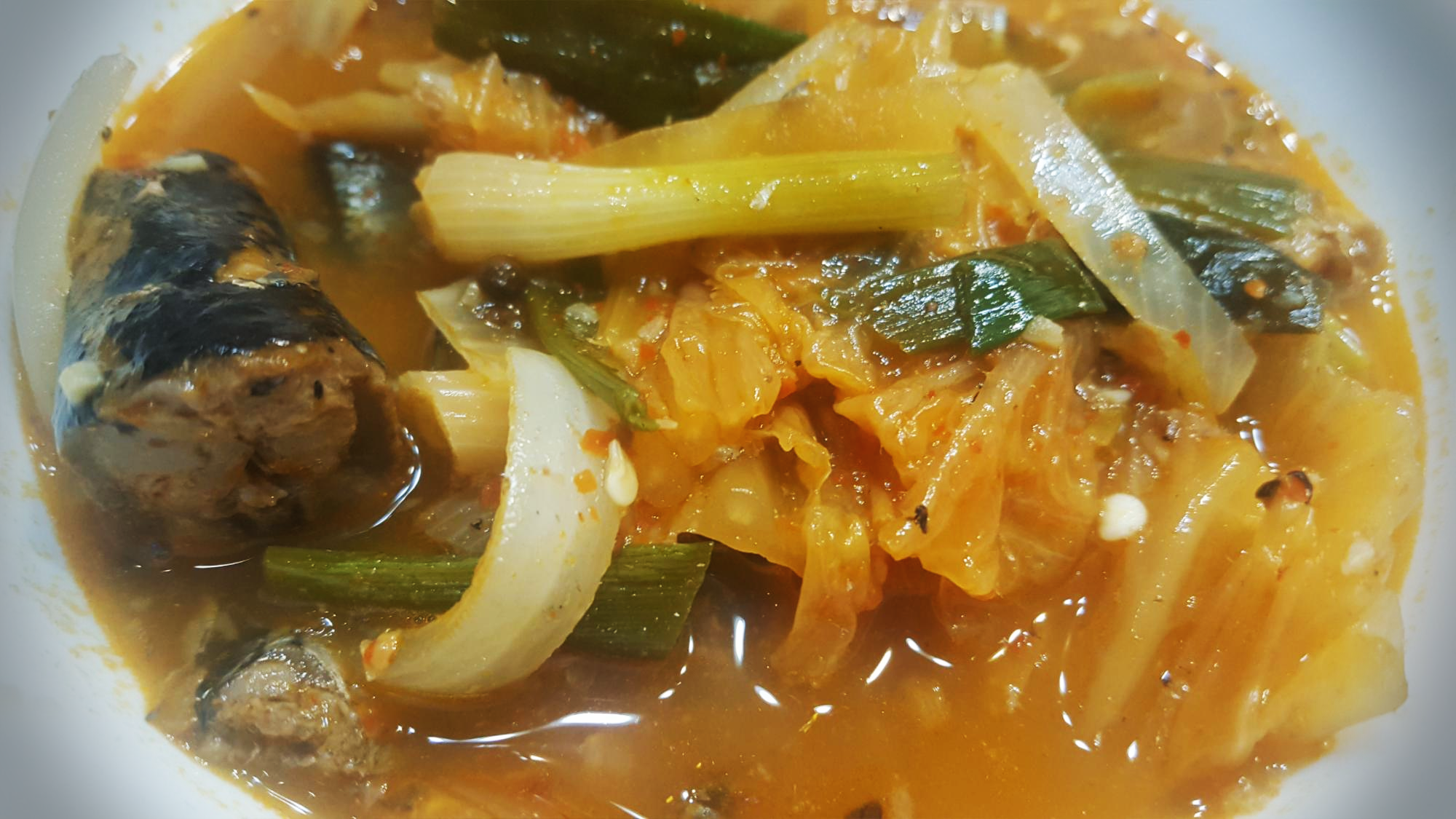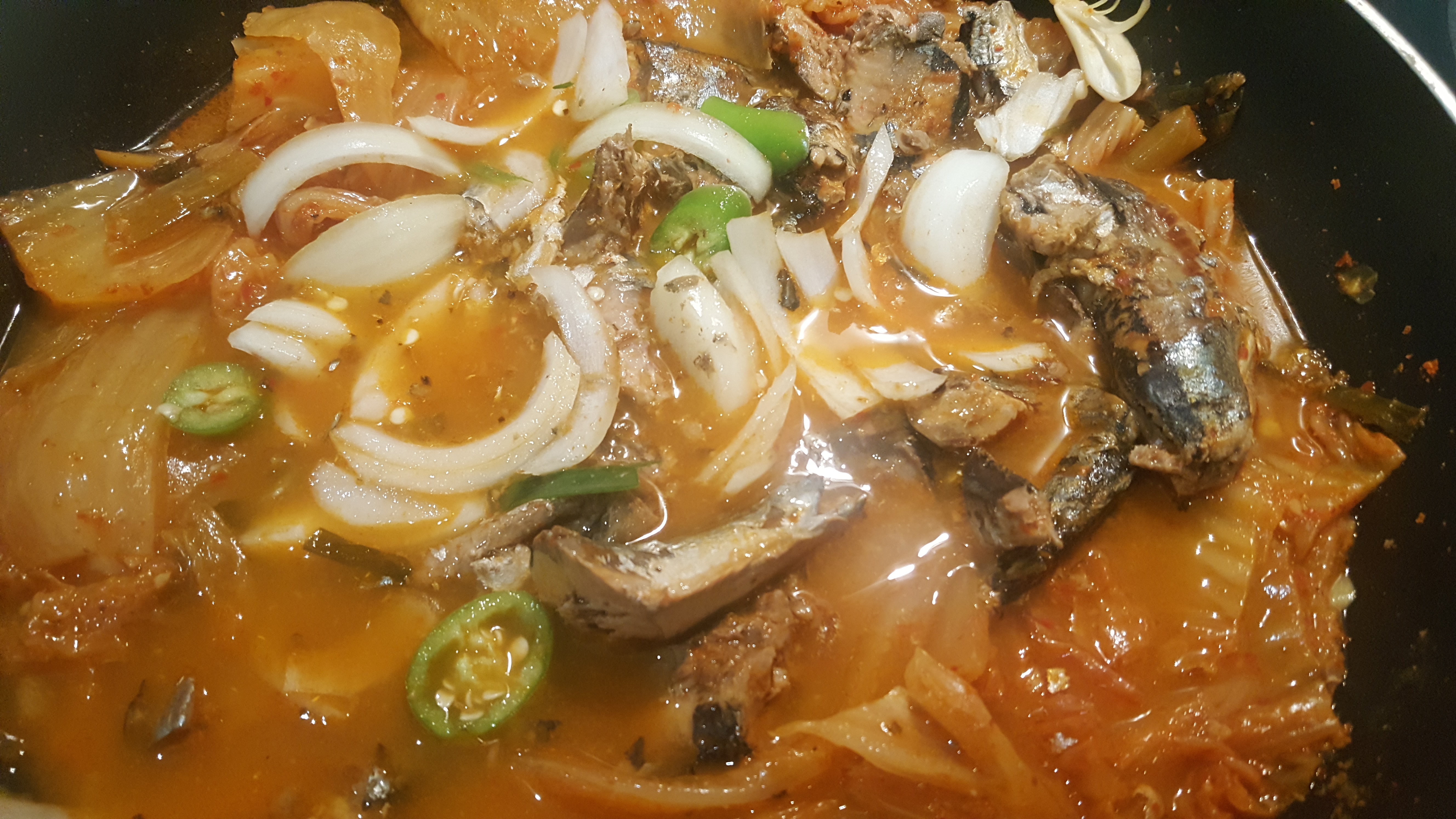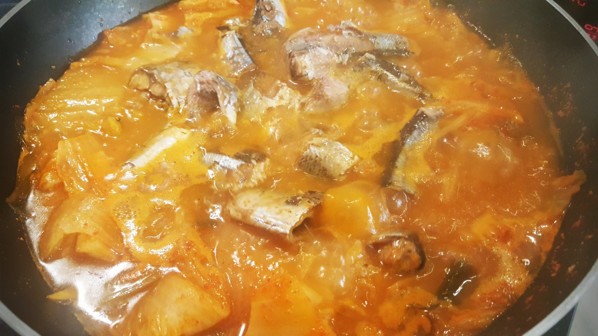 김치를 어느 정도(10~15분) 끓인 뒤에 중간에 꽁치를 넣어줬어요.