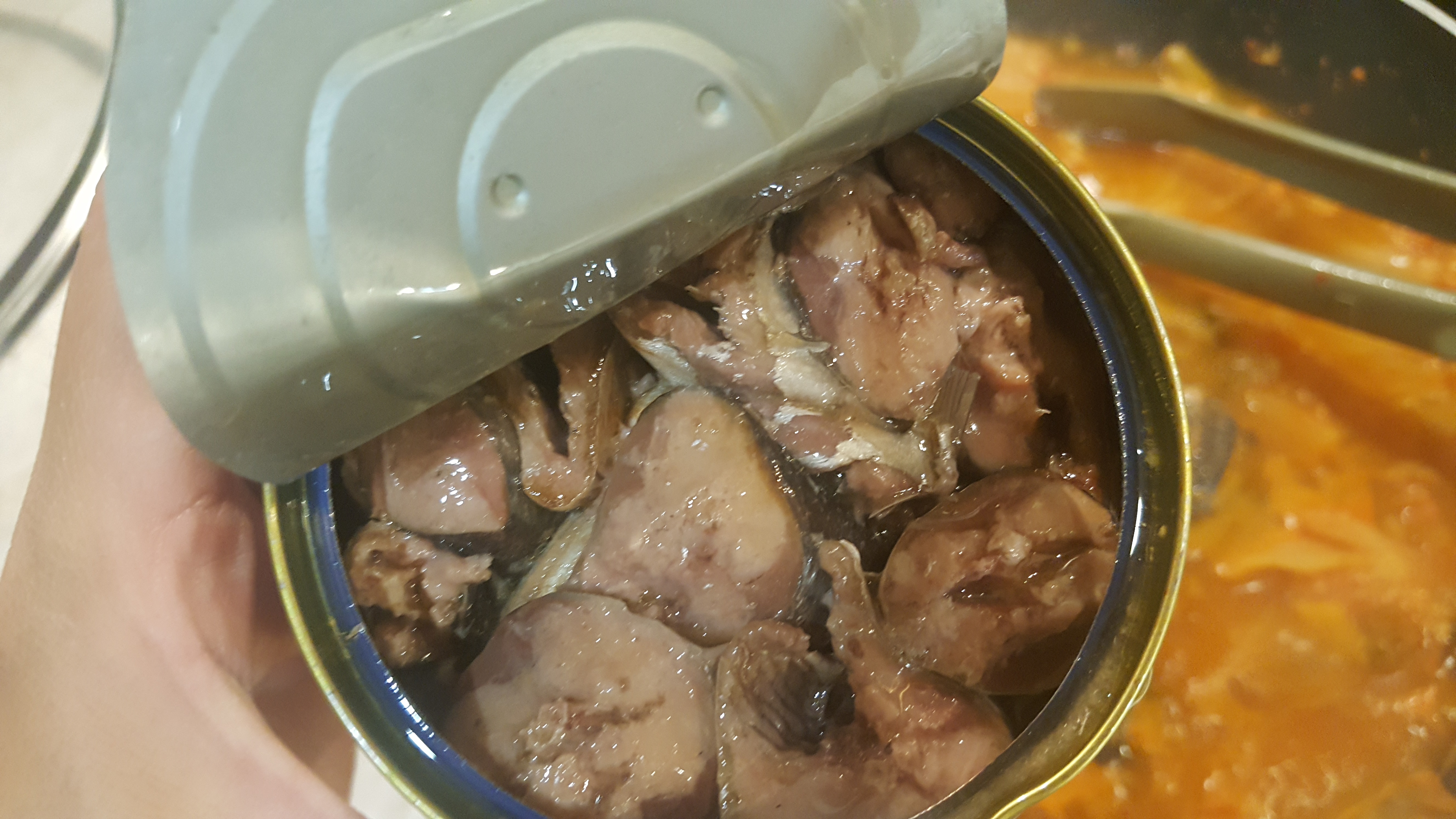 처음부터 꽁치를 넣으면 나중에 으스러질 것 같아서