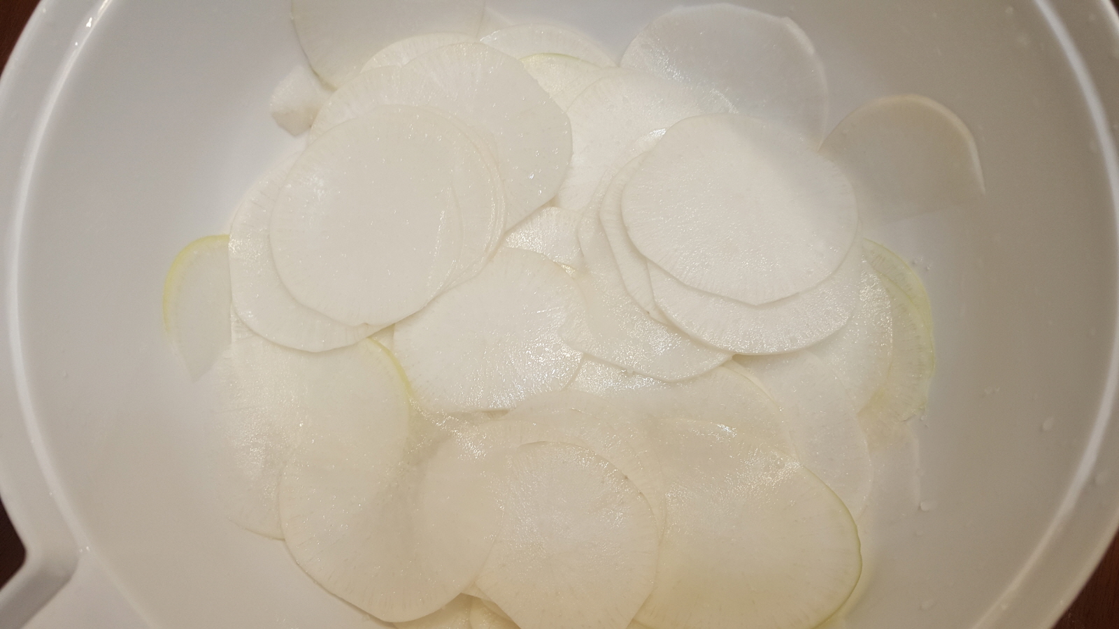 무가 소금에 절여지는 동안