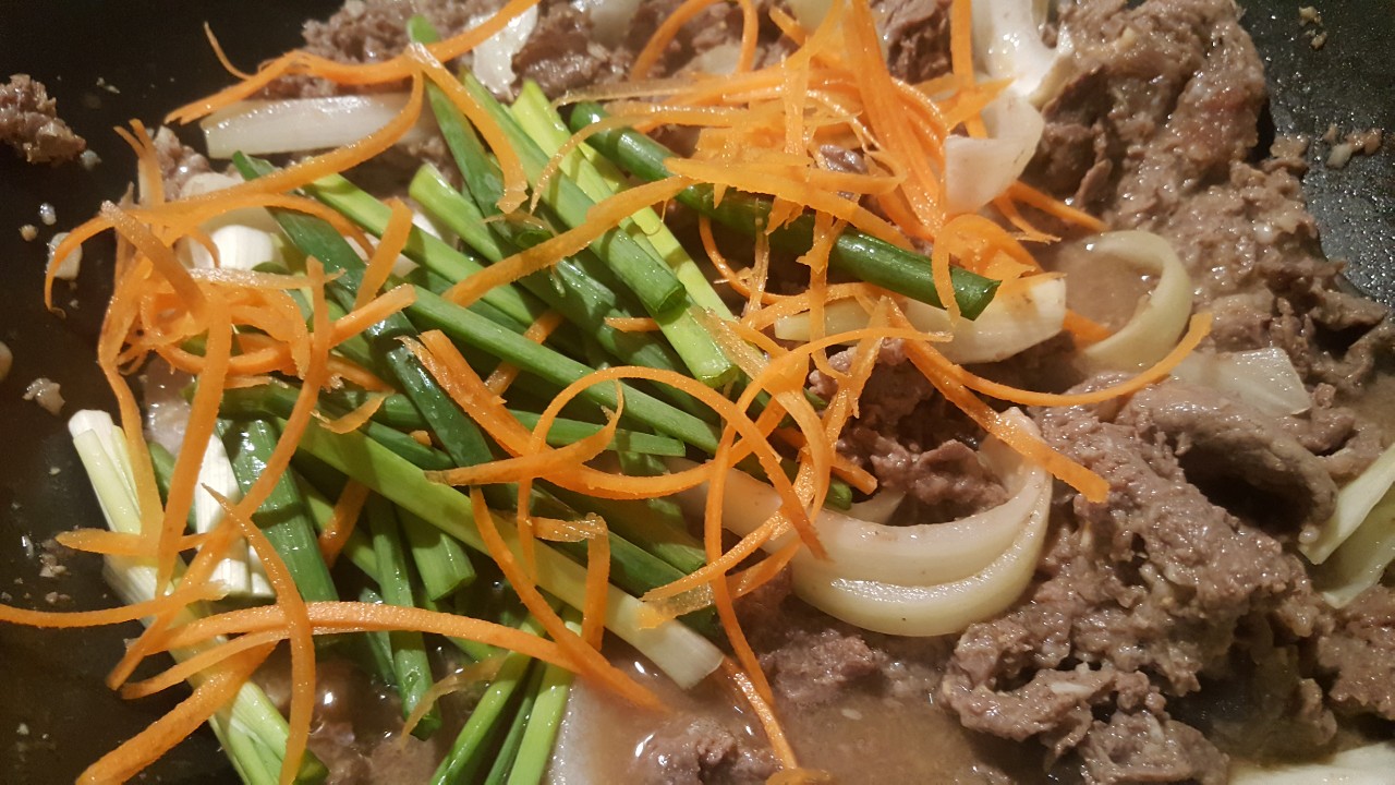 야채는 양파, 파, 당근, 고추 넣었어요.