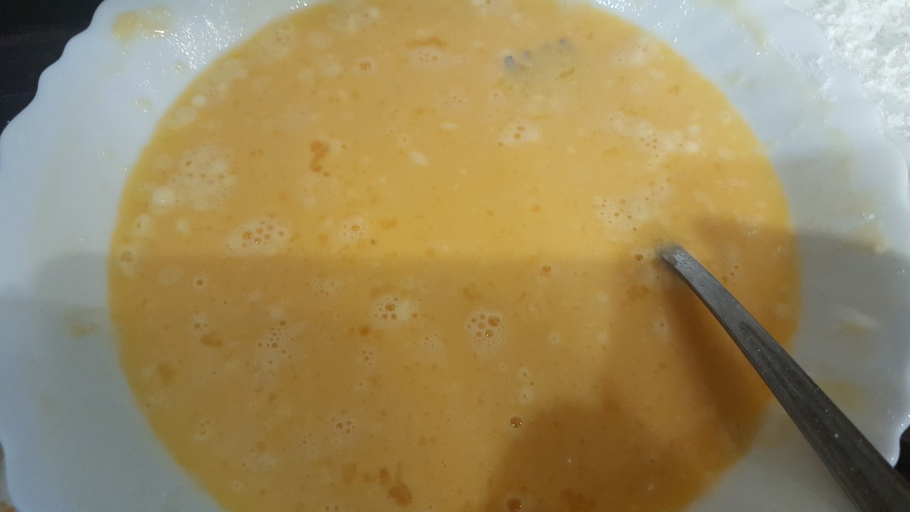 튀김가루 -> 계란+튀김가루+ 소금 살짝(걸쭉하게) -> 빵가루