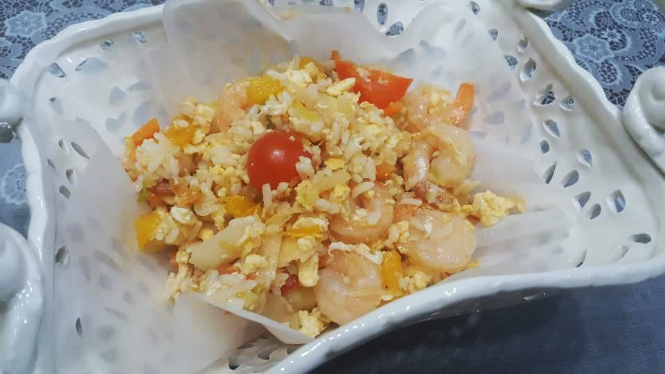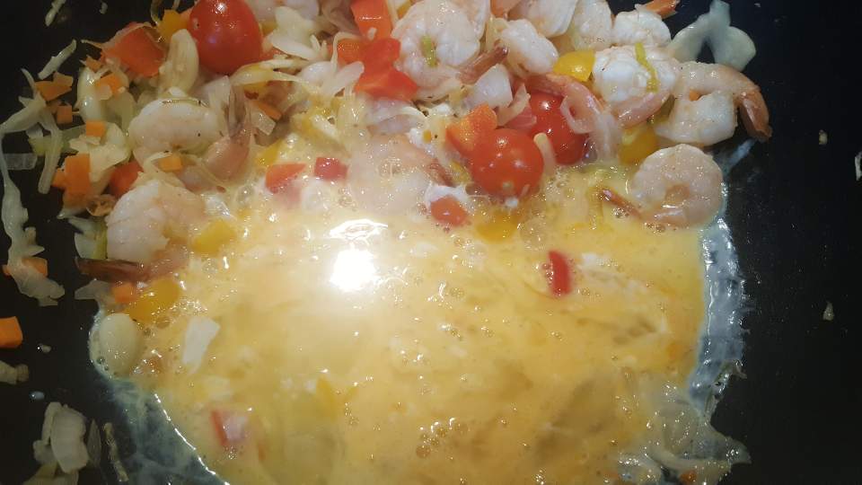 나머지 야채 -> 새우-> 스크램블 에그